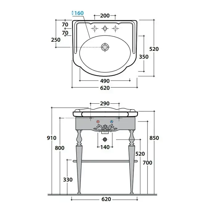 Globo Paestum Консоль латунь напольная 71х58хh80,5см с раковиной на 3 отв,, цвет: хром