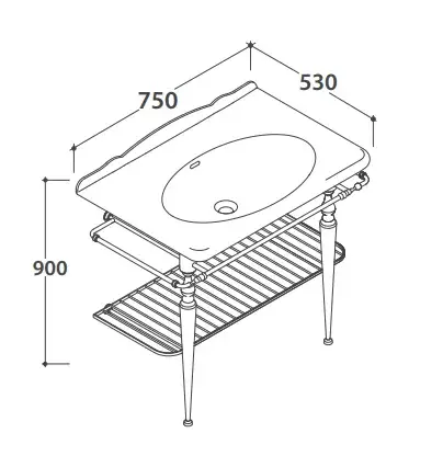 Globo Paestum Консоль латунь напольная 71х58хh80,5см с раковиной на 3 отв,, цвет: хром