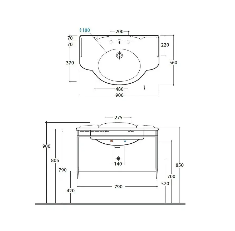 Globo Paestum Консоль латунь напольная 71х58хh80,5см с раковиной на 3 отв,, цвет: хром