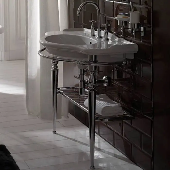 Globo Paestum Консоль латунь напольная 90х56см, с раковиной с 1 отв. под смесит., консоль хром/раковина белая