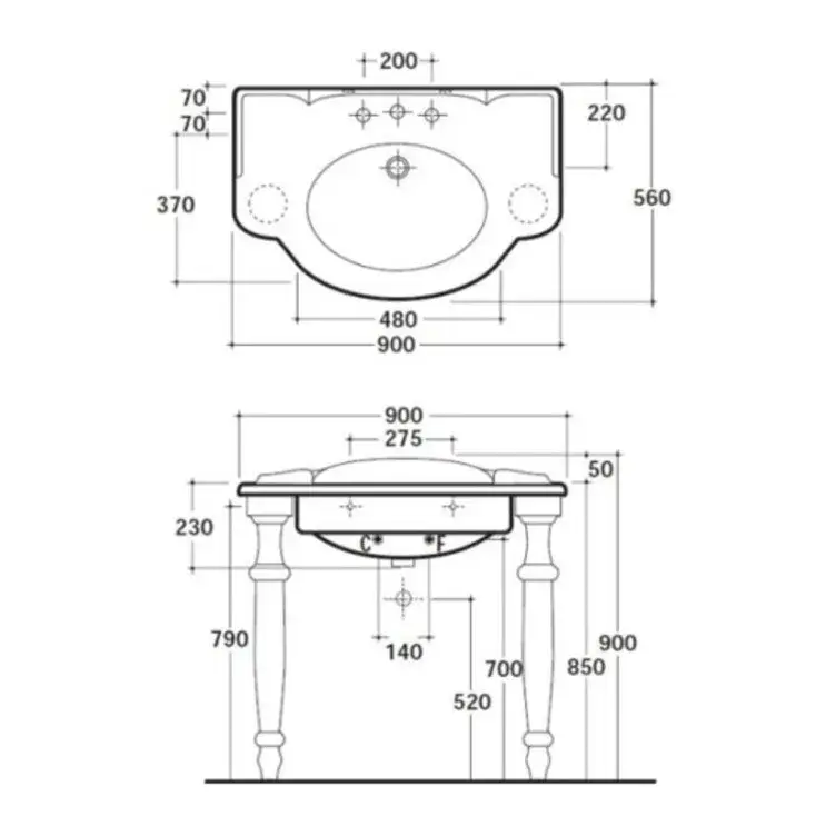 Globo Paestum Консоль латунь напольная 71х58хh80,5см с раковиной на 3 отв,, цвет: хром