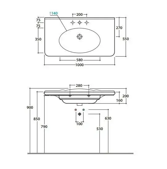 Globo Paestum Раковина 100х55х20 см, с 1 отв., цвет: белый