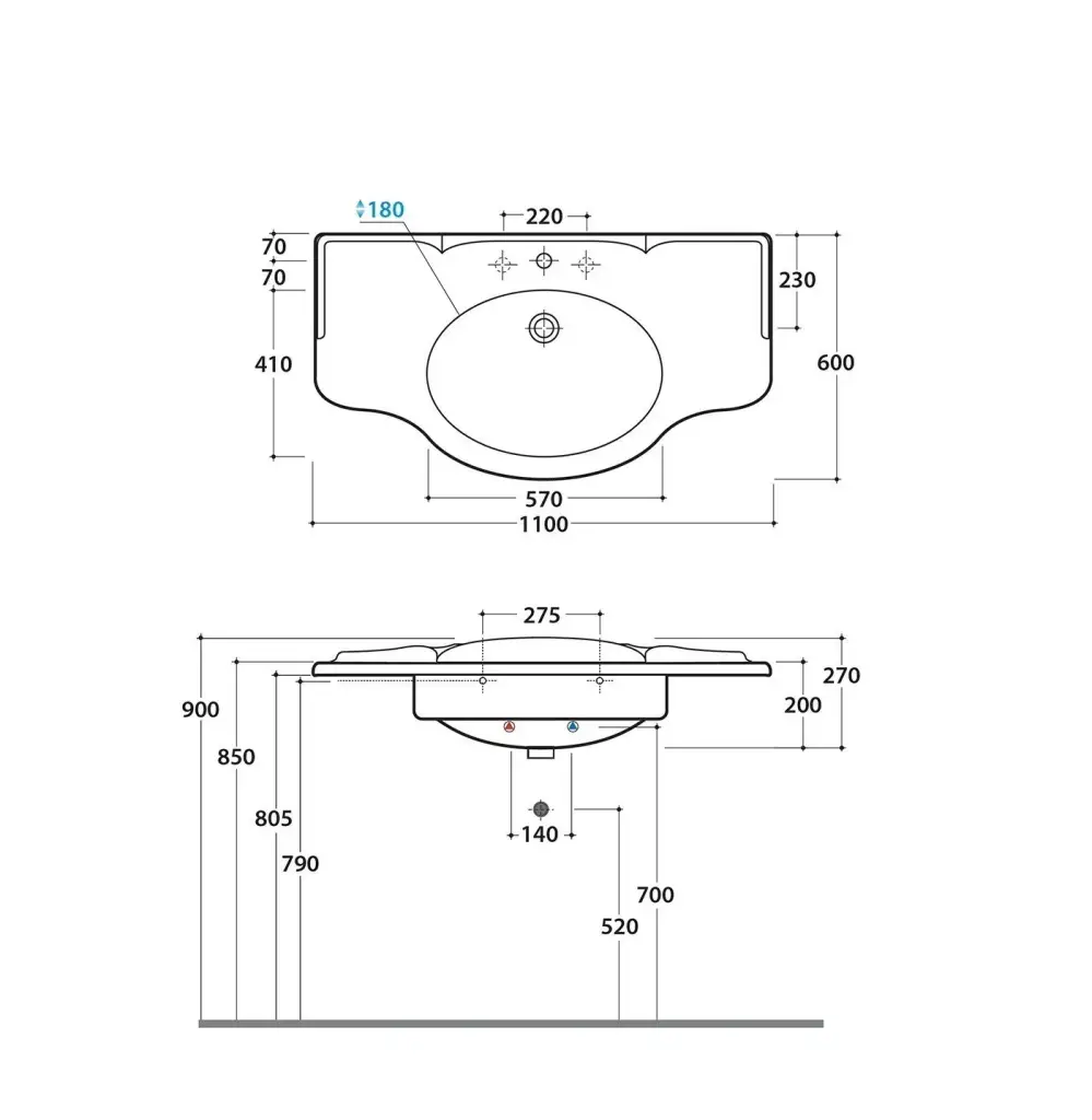 Globo Paestum Раковина подвесная 110x60 см, с переливом и креплением, без д/к, цвет: белый глянцевый PA022BI