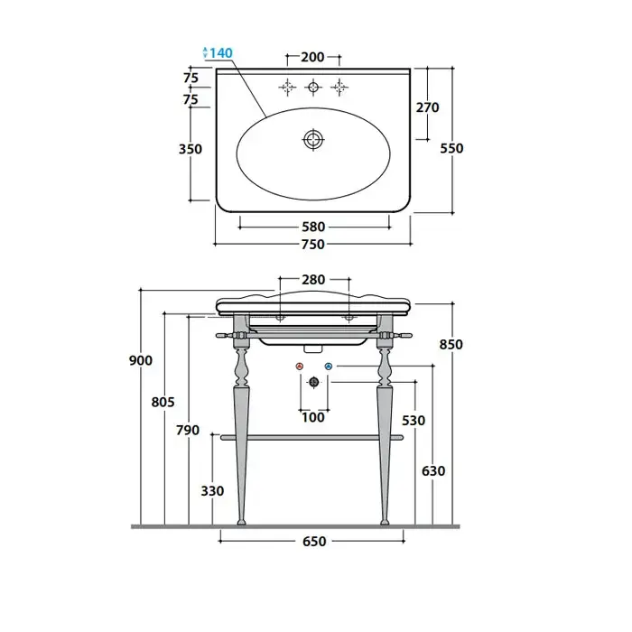 Globo Paestum Консоль латунь напольная 71х58хh80,5см с раковиной на 3 отв,, цвет: хром
