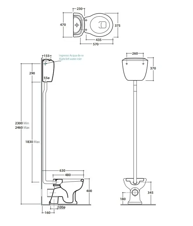 Globo Paestum Унитаз напольный 58х37,5см, слив пол, с высоким бачком, трубой, цвет: белый/хром