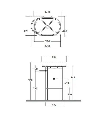 Globo Ring Консоль напольная под раковину B6O61, 65x42x84,5h см, цвет: черный матовый OP001RAR