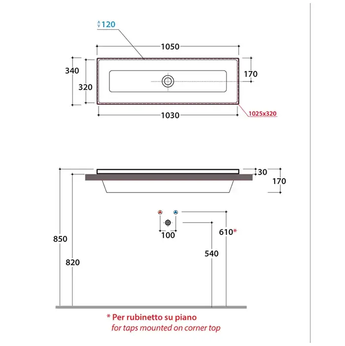 Globo Stockholm Раковина встраиваемая сверху 105x34 см, с переливом, без д/к, цвет: белый глянцевый FO105BI