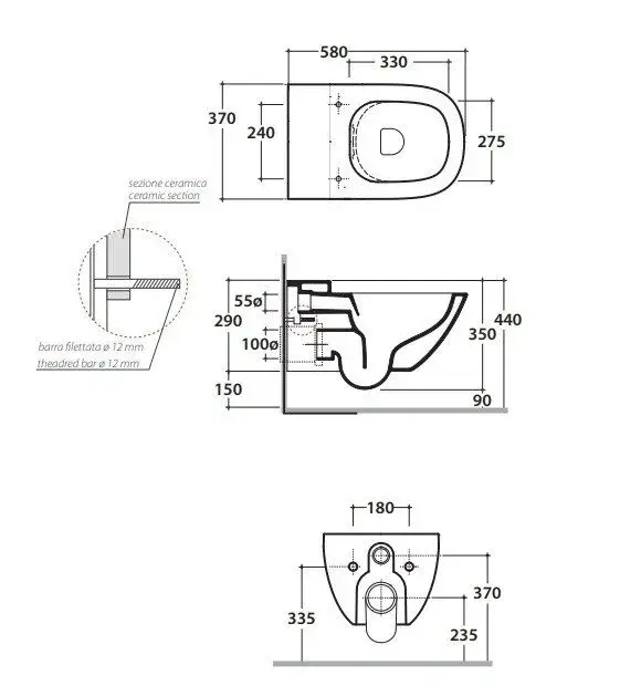 Globo Stockholm Унитаз подвесной безободковый, с креплением, 37x58 см, цвет: белый глянцевый LAS04BI