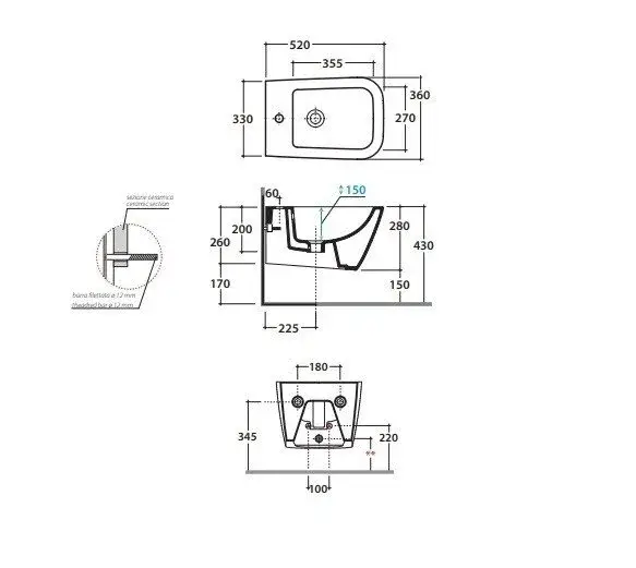Globo Stone Биде подвесное 52х36 см, 1 отв. под смеситель, системой скрытого крепежа, цвет: черный матовый