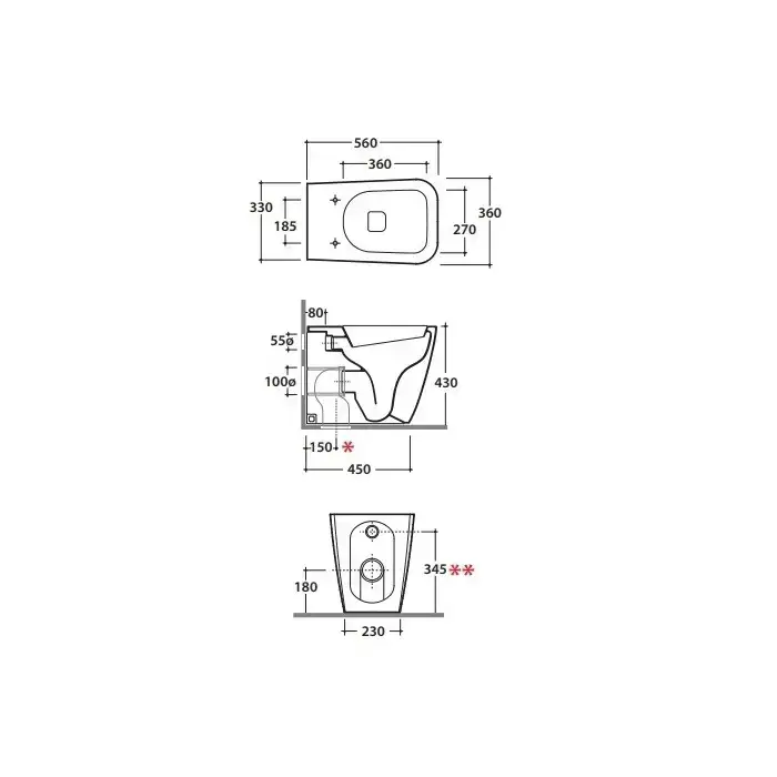 Globo Stone Унитаз подвесной 52х36см, безободковый, с системой скрытого крепежа, цвет: белый матовый
