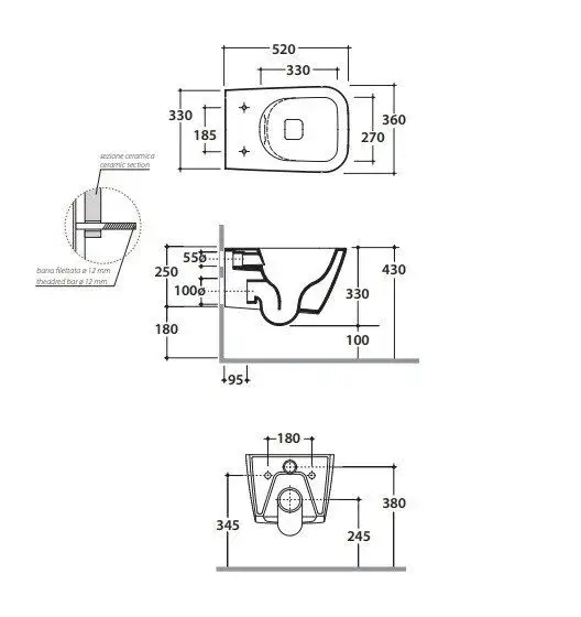 Globo Stone Унитаз подвесной 52х36см., безободковый, с системой скрытого крепежа, цвет: Agata