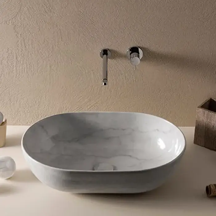 Globo T-Edge Раковина чаша 60x38x16h см, без перелива, без д/к, цвет: marmo di carrara B6O60MC