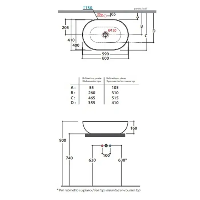 Globo T-Edge Раковина-чаша 37х14 см, без отв., встроенная сверху в столешницу, цвет: Agata