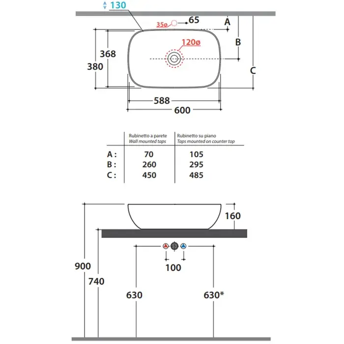 Globo T-Edge Раковина-чаша 37х14 см, без отв., встроенная сверху в столешницу, цвет: Agata