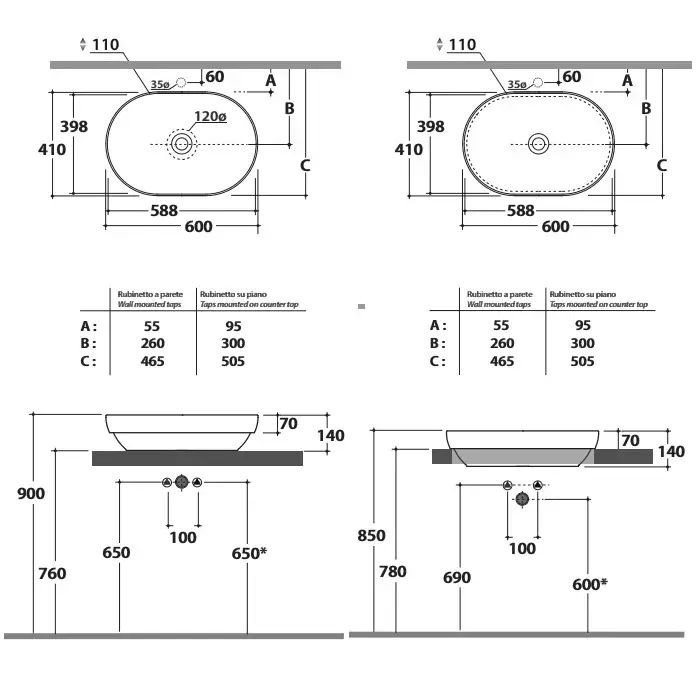 Globo T-Edge Раковина-чаша 60х41х14 см, без отв., на столешницу, цвет: Felce