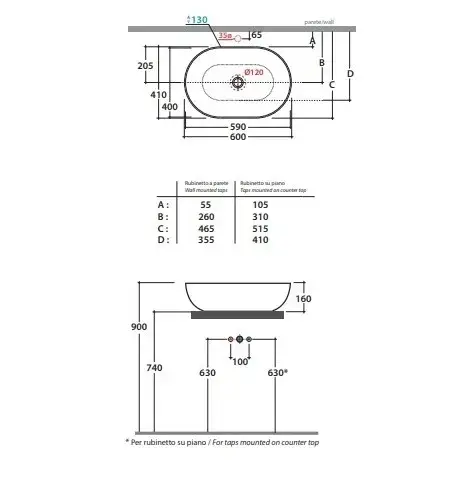 Globo T-Edge Раковина-чаша 37х14 см, без отв., встроенная сверху в столешницу, цвет: Agata