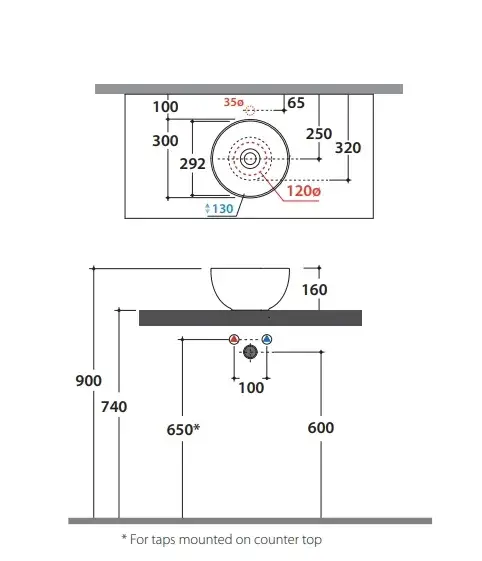 Globo T-Edge Раковина-чаша 37х14 см, без отв., встроенная сверху в столешницу, цвет: Agata