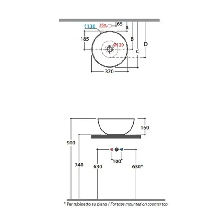 Globo T-Edge Раковина-чаша 37х14 см, без отв., встроенная сверху в столешницу, цвет: Agata