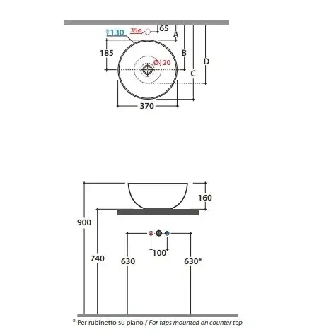 Globo T-Edge Раковина-чаша 37х14 см, без отв., встроенная сверху в столешницу, цвет: Agata