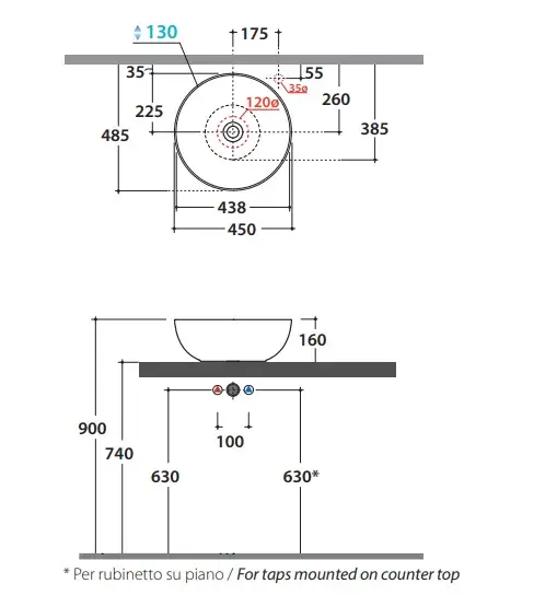 Globo T-Edge Раковина-чаша 37х14 см, без отв., встроенная сверху в столешницу, цвет: Agata