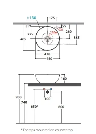 Globo T-Edge Раковина-чаша 37х14 см, без отв., встроенная сверху в столешницу, цвет: Agata