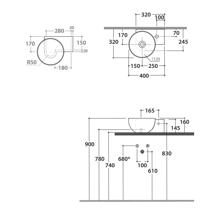 Globo T-Edge Раковина-чаша 35х14 см, без отв., на столешницу, цвет: белый