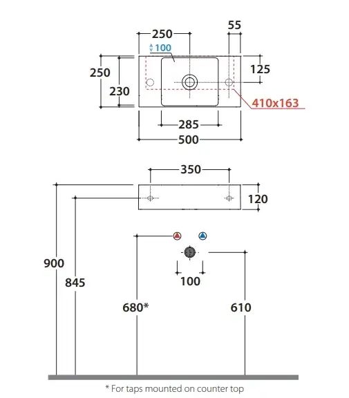 Globo T-Edge Раковина подвесной 50x25 см, без перелива и д/к, цвет: белый глянцевый B6R52BI