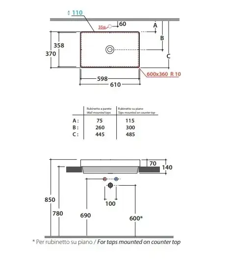 Globo T-Edge Раковина полувстраиваемая 61x37 см, без перелива, без д/к, цвет: белый глянцевый B6R61BI
