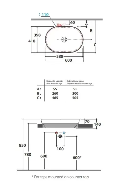 Globo T-Edge Раковина-чаша 60х41х14 см, без отв., на столешницу, цвет: Felce