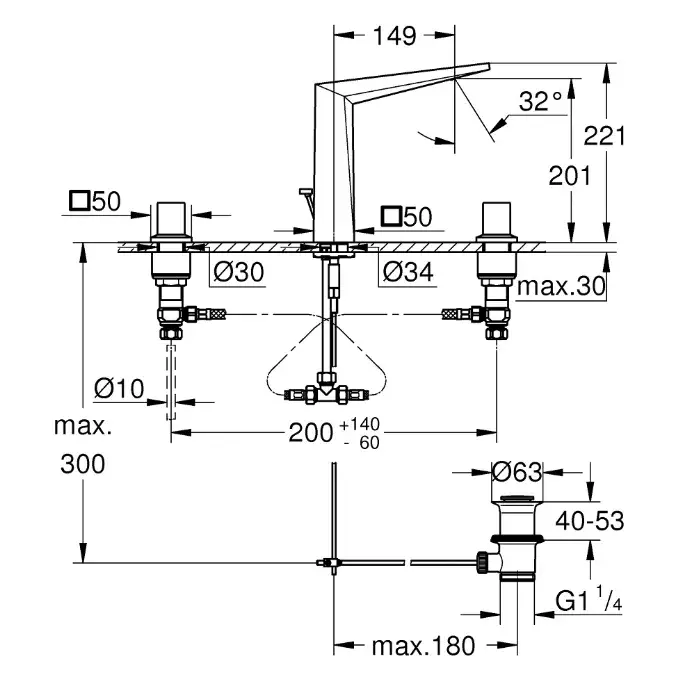Grohe Allure Brilliant Смеситель для ванны, на 4 отверстия, на борт, цвет: хром 19787001