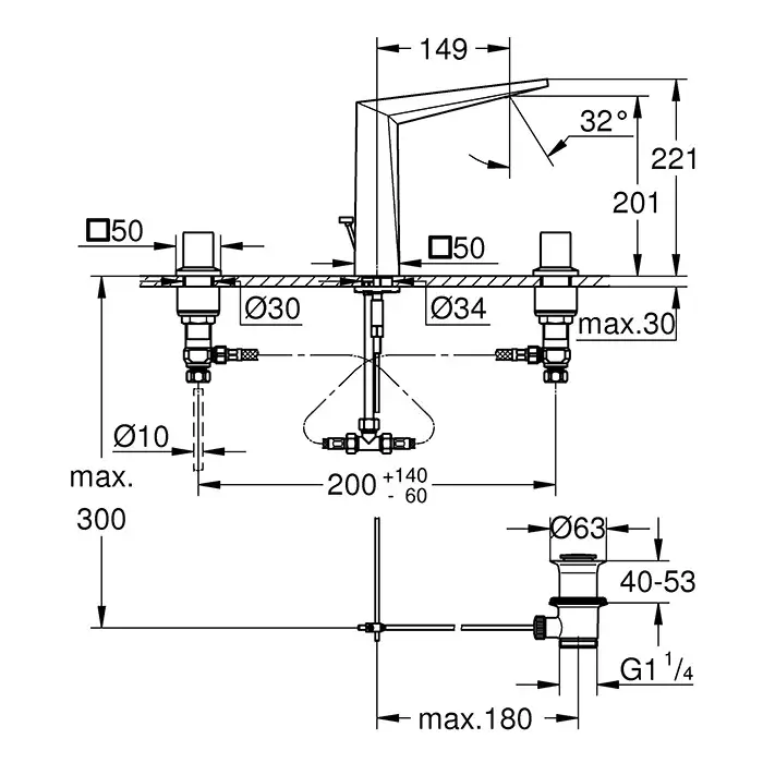 Grohe Allure Brilliant Смеситель для ванны, на 4 отверстия, на борт, цвет: хром 19787001