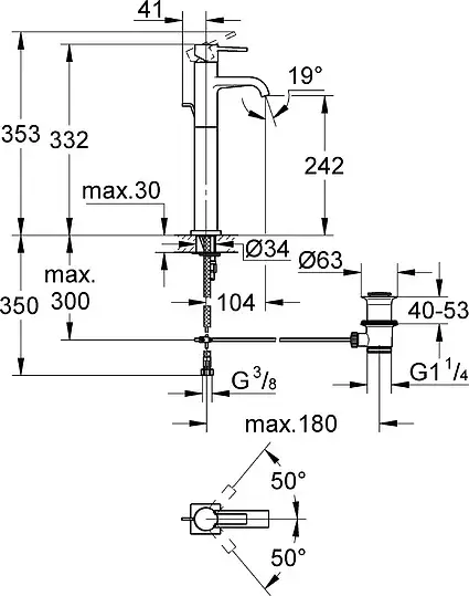 Grohe Allure Смеситель для раковины высокий, с д/к, высота излива 24,2 см, цвет: хром 32760000