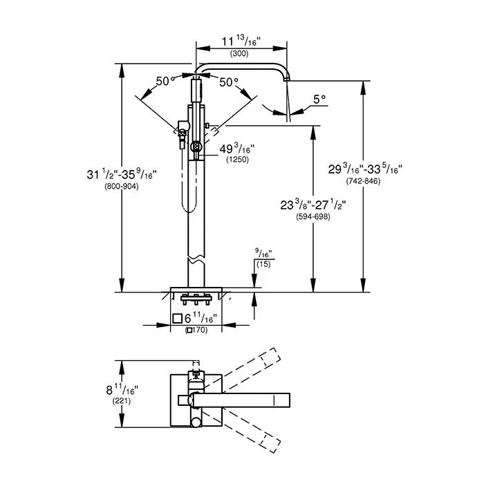 Grohe Allure Излив для ванны, напол. монтаж, комплект верхней монтаж. части для 45 984 000 13218000