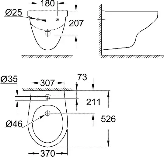 Grohe Bau Ceramic Унитаз 69x36 см, напольный, слив в стену, цвет: хром 39428000