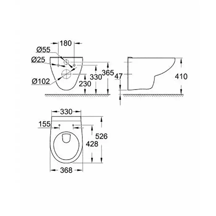 Grohe Bau Ceramic Унитаз 69x36 см, напольный, слив в стену, цвет: хром 39428000