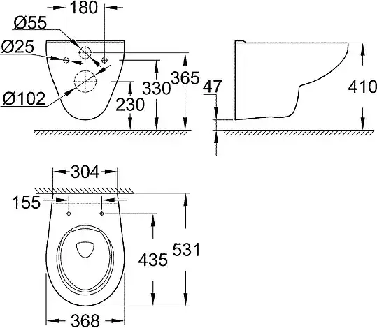 Grohe Bau Ceramic Унитаз 69x36 см, напольный, слив в стену, цвет: хром 39428000