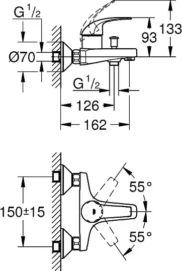 Grohe BauCurve Смеситель для ванны с душем, цвет: хром 23599000