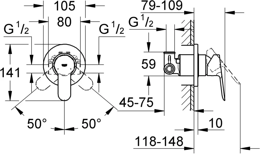 Grohe BauEdge Смеситель для раковины встраиваемый, с внутр. частью, длина излива 17,1 см, цвет: хром 20474000