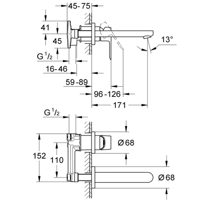 Grohe BauEdge Смеситель для раковины встраиваемый, с внутр. частью, длина излива 17,1 см, цвет: хром 20474000