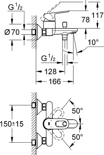 Grohe BauEdge Смеситель для ванны накладной, цвет: хром 23341000