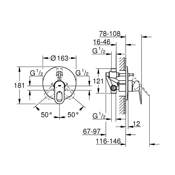 Grohe BauFlow Смеситель для душа, с внутренней частью, цвет: хром 29112000
