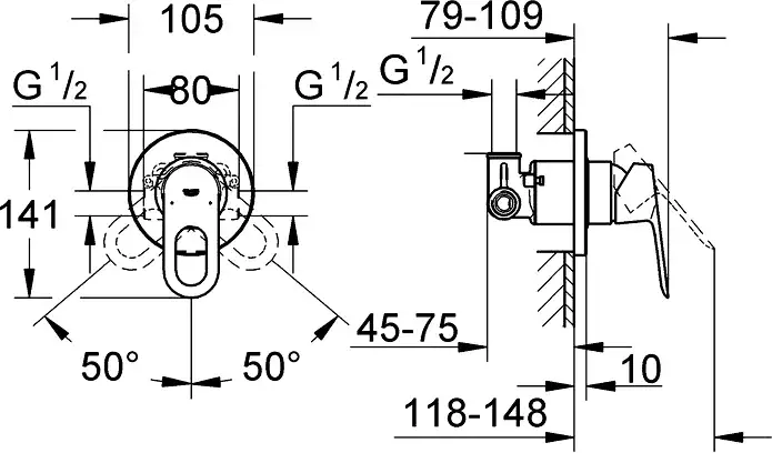 Grohe BauLoop Смеситель для раковины настенный встраиваемый, цвет: хром 20289000
