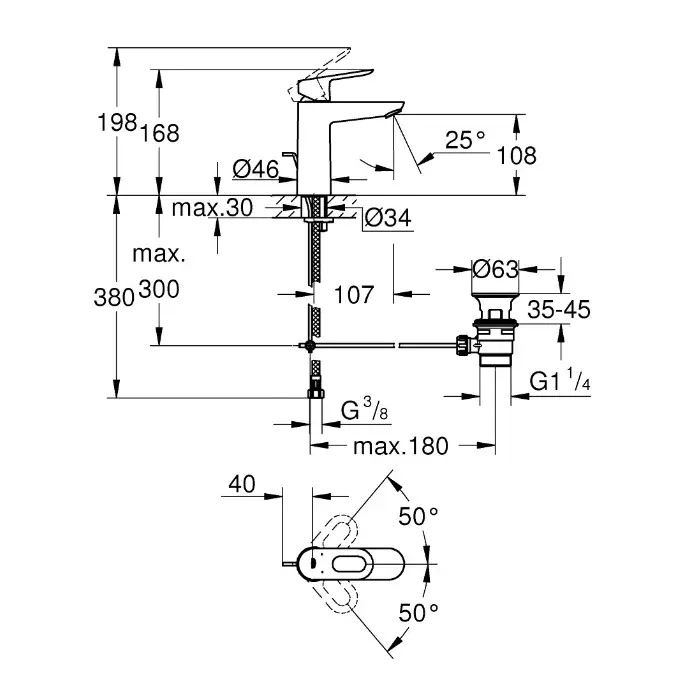 Grohe BauLoop Смеситель для раковины, сливной гарнитур, L-Size, цвет: хром 23763000