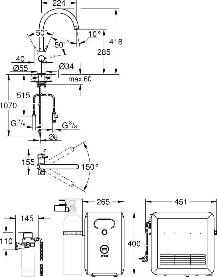 Grohe Blue Смеситель для кухни с системой фильтрации, газированием и охлажден., цвет: хром 31607002