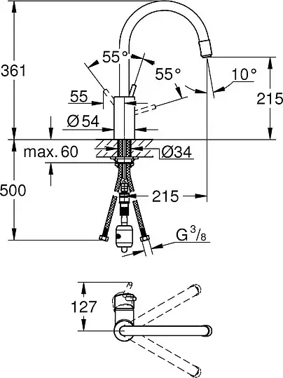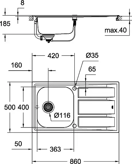 Grohe Concetto Комплект: мойка K400 31566SD0 + смес. для мойки Concetto 32663001, цвет: нерж. сталь 31570SD0
