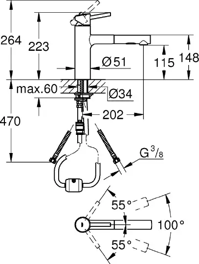 Grohe Concetto Комплект: мойка K400 31566SD0 + смес. для мойки Concetto 32663001, цвет: нерж. сталь 31570SD0