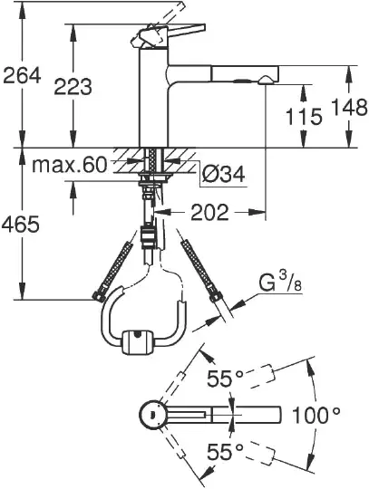 Grohe Concetto Комплект: мойка K400 31566SD0 + смес. для мойки Concetto 32663001, цвет: нерж. сталь 31570SD0