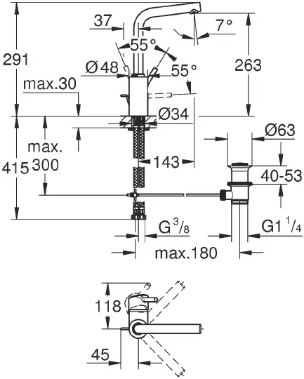 Grohe Concetto Смеситель для раковины, с д/к, высота излива 26,3 см, цвет: хром 23739002