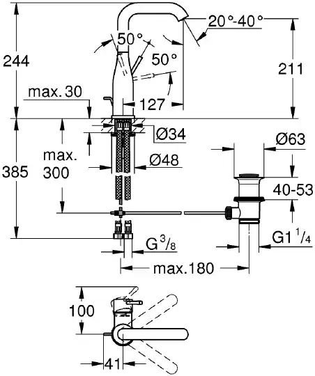 Grohe Essence New Смеситель для раковины, с д/к, выс. изл. 21,1 см, цвет: холодный рассвет, матовый 32628GN1