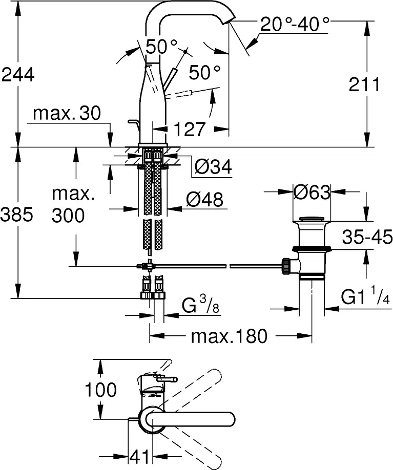 Grohe Essence New Смеситель для раковины высокий, с д/к, высота излива 21,1 см, цвет: суперсталь 32628DC1